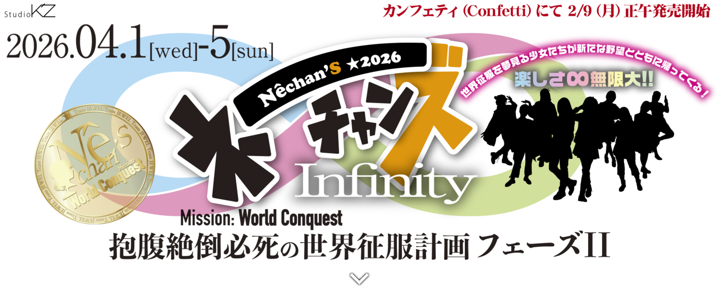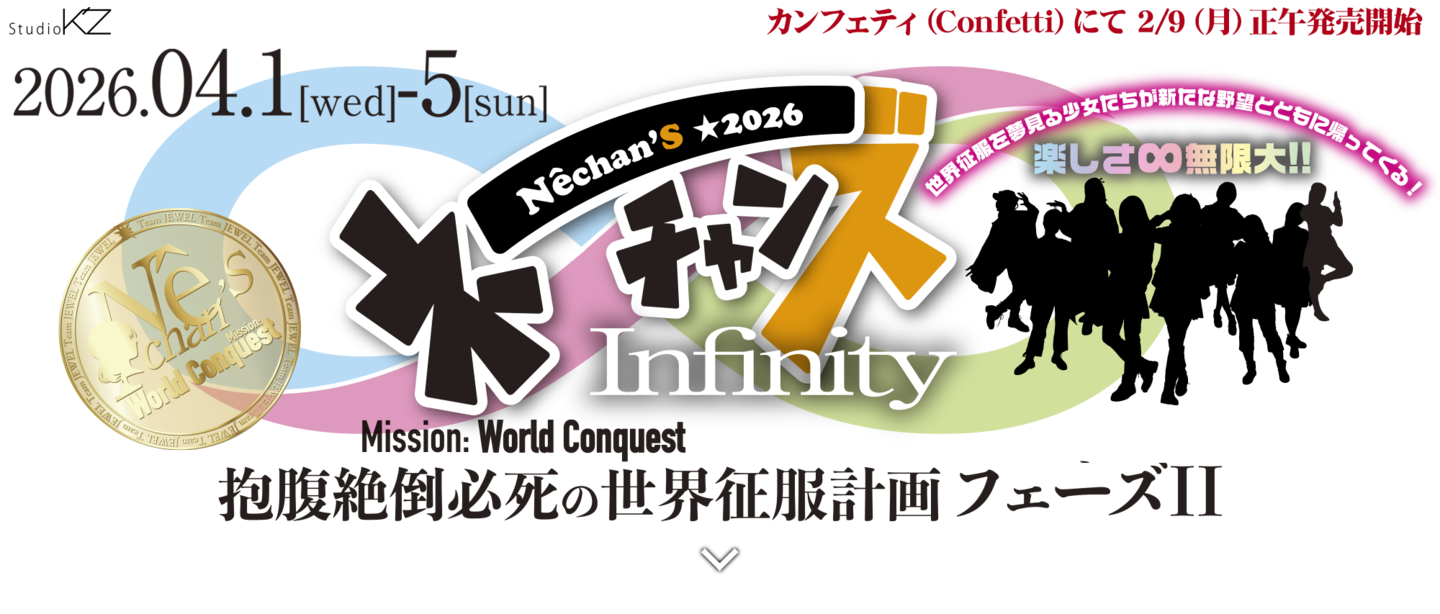 世界征服を夢みる女の子達と時空を研究する謎の組織による抱腹絶倒必至、笑って泣ける潜入コメディーの第2弾「ネーチャンズ∞インフィニティ」にご期待下さい!