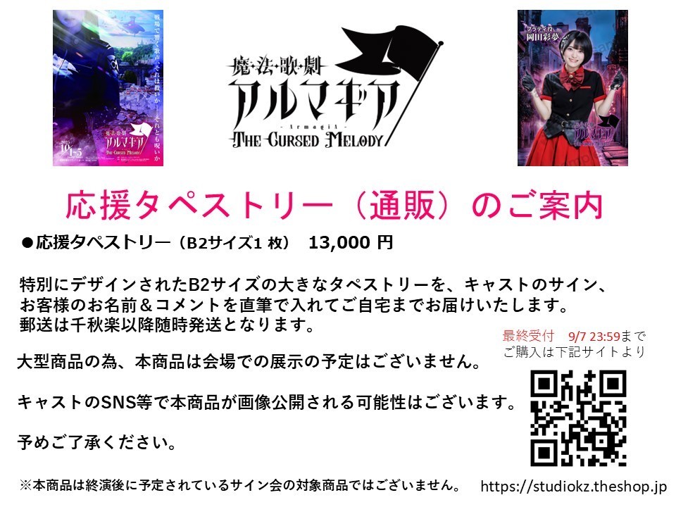 ●本商品は公演中にキャストにサインをいただき、千秋楽以降、10月中旬頃の発送を予定しております。