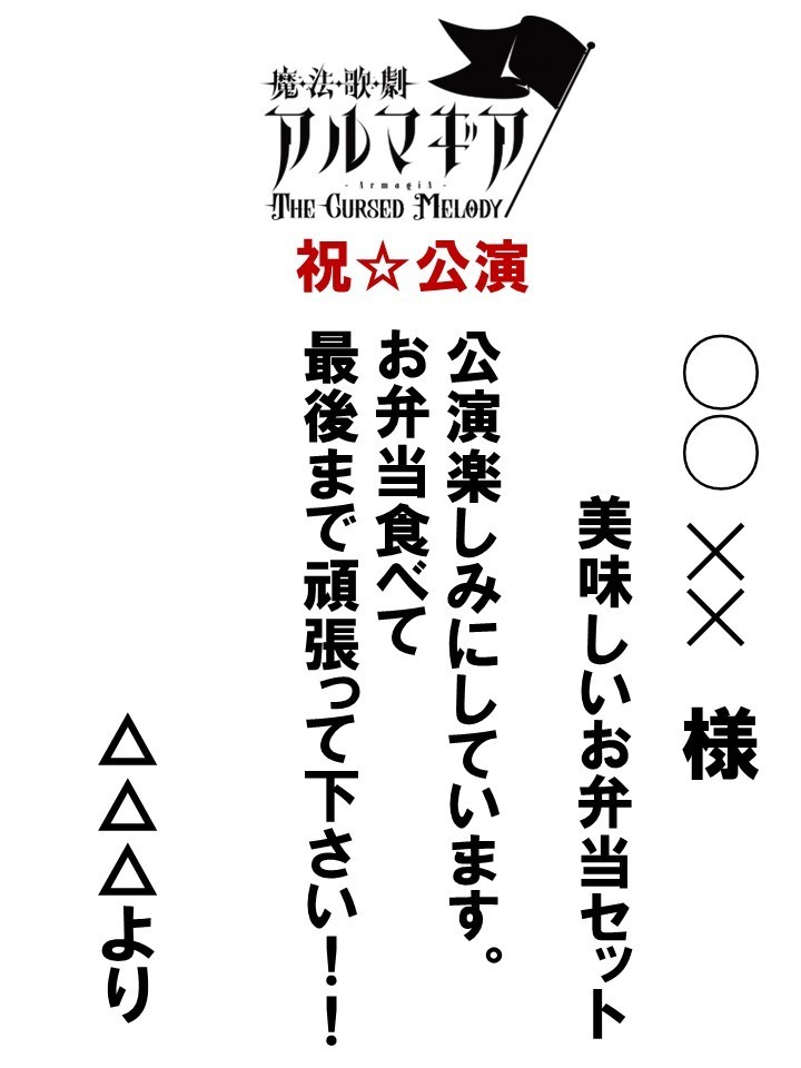 本公演ではキャストや公演スタッフへの差し入れの代行を下記サイトにて受け付けます。