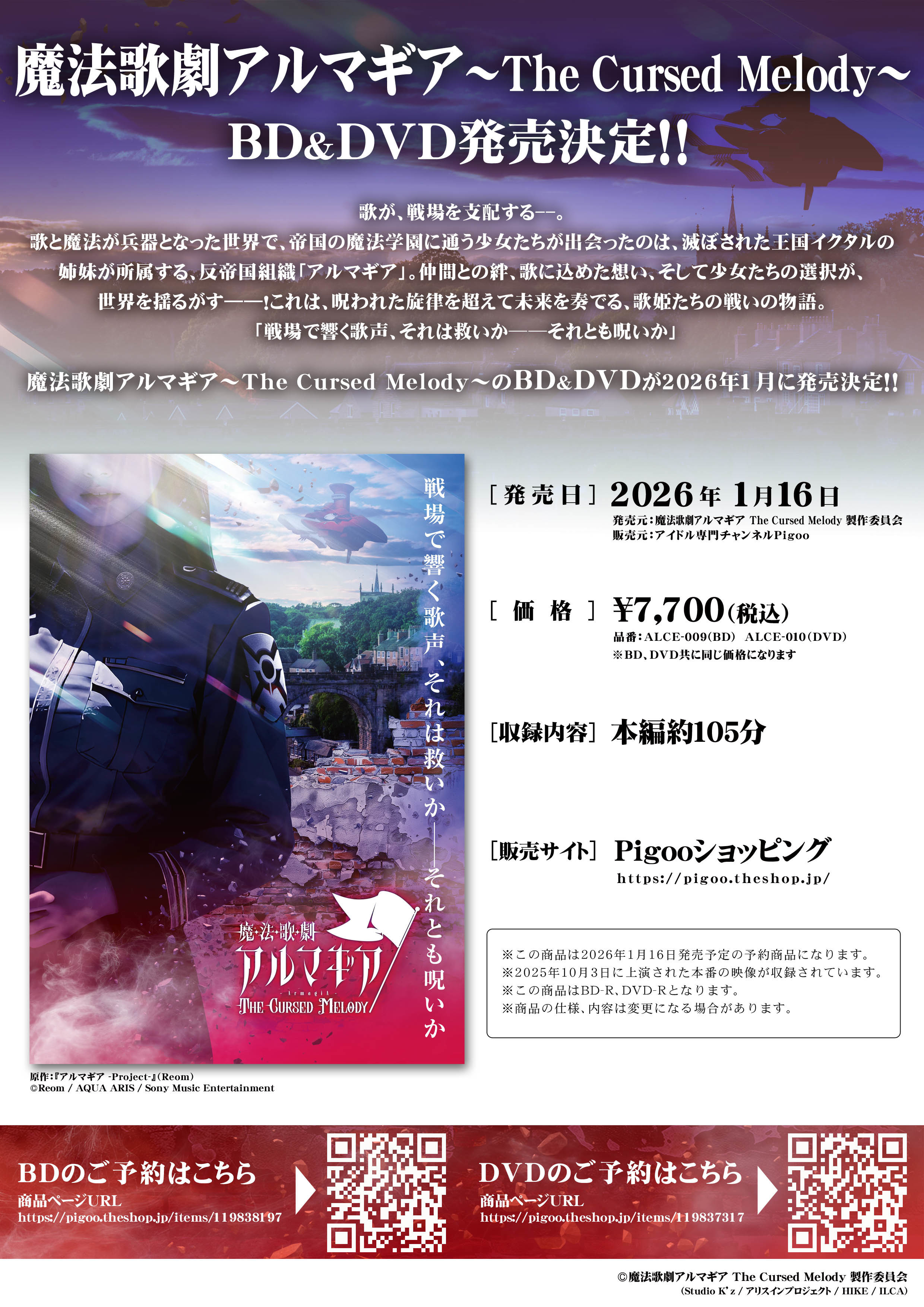 品番: ALCE-009(BD) ALCE-010(DVD) ※BD、DVD共に同じ価格になります